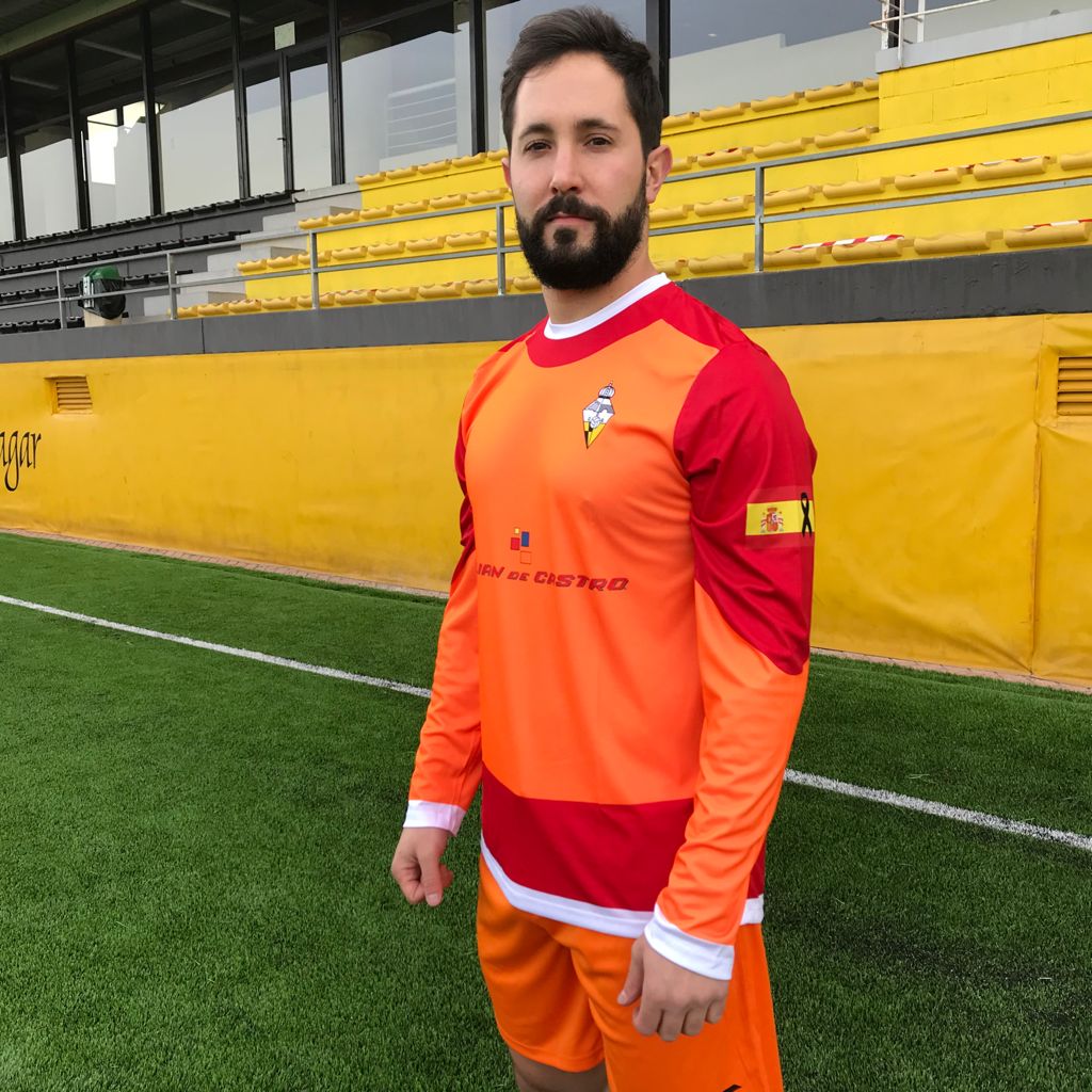 Equipación de portero naranja y roja para la temporada 2020/2021 que incluye tres elementos característicos: